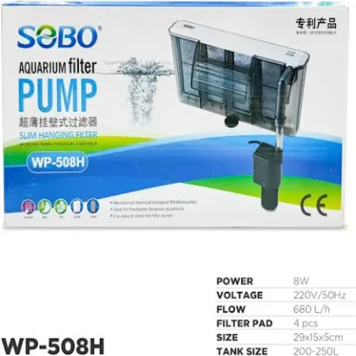 SOBO WP‑508H Slim Hang‑On Aquarium Filter | 6.8–8 W | Up to 800 L/H Mechanical, Chemical & Biological Filtration